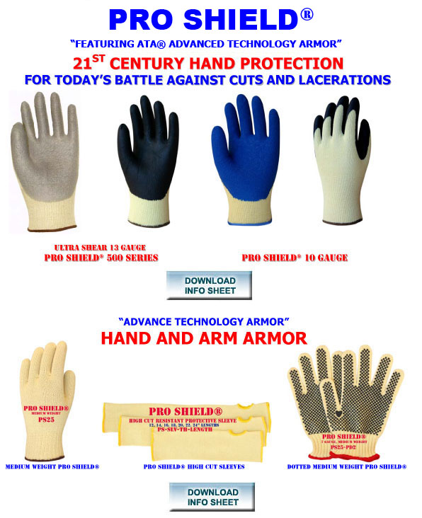 ***Pro Shield® and Comfort Fit Technology® are registered trademarks of Double D Knitting and Glove Inc. ***ATA® and ADVANCED TECHNOLOGY ARMOR® are registered trademarks of Worldwide Protective Products, LLC.